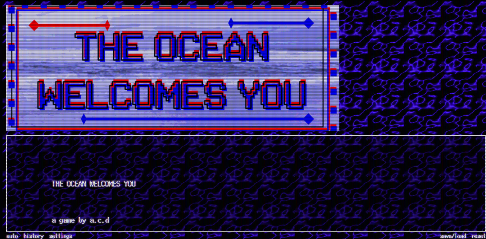 THE OCEAN WELCOMES YOU contains potentially triggering content. Warning for drowning, non-graphic descriptions of gore, and meta references to unreality.